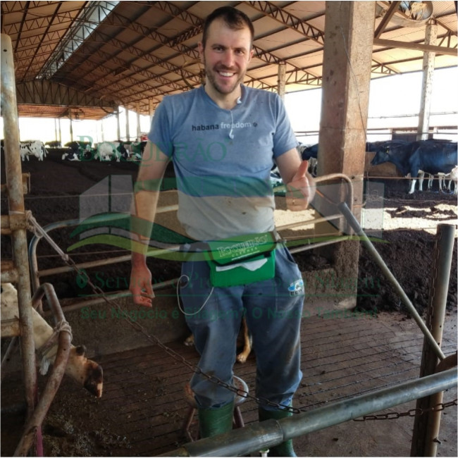 Ideal para sala de ordenha, o cinto permite a retirada de um papel por vez. Agiliza o processo de ordenha por possuir alças para carregar os copos de pré e pós dipping.